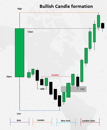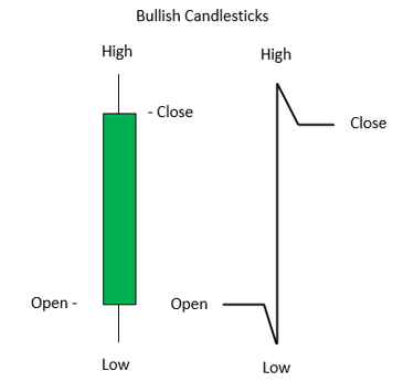 The body of the candle represents the open and close price of that candle and visually depicts the volume traded in that candle-the bigger the body, the bigger the amount of volume traded during that candle.
