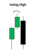 A swing high is created when a high is higher than any other surrounding prices in a given period of time.