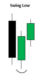 A swing low is created when a low is lower than by other surrounding prices in a given period of time.
